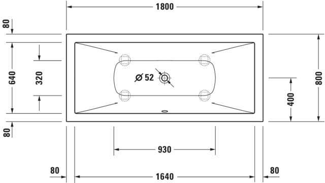 Duravit Rechteck-Badewanne DuraSquare 180 x 80 x 46 cm, Einbauversion, 2 Rückenschrägen, matt-weiß