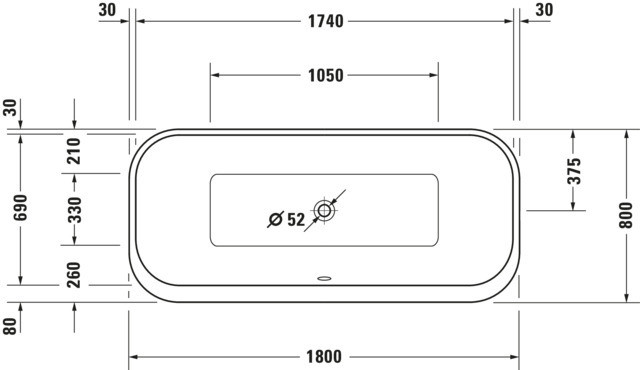 Duravit Rechteck-Badewanne Happy D.2 Plus 180 x 80 x 46 cm, freistehend, Acrylverkleidung weiß, weiß