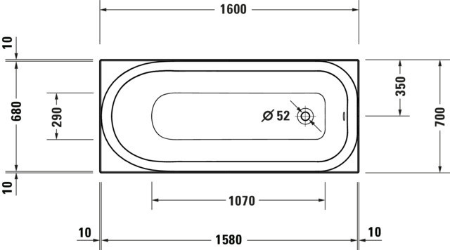 Duravit Rechteck-Badewanne Soleil by Starck 160 x 70 x 45 cm, Einbauversion, 1 Rückenschräge, weiß