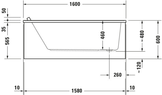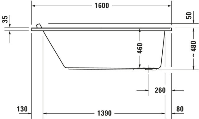 Duravit Rechteck-Badewanne Starck 160 x 70 x 46 cm, Einbauversion, 1 Rückenschräge, weiß