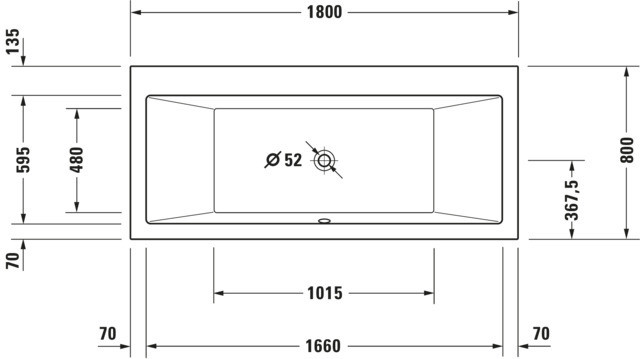 Duravit Rechteck-Badewanne Vero 180 x 80 x 46 cm, Einbauversion, 2 Rückenschrägen, weiß