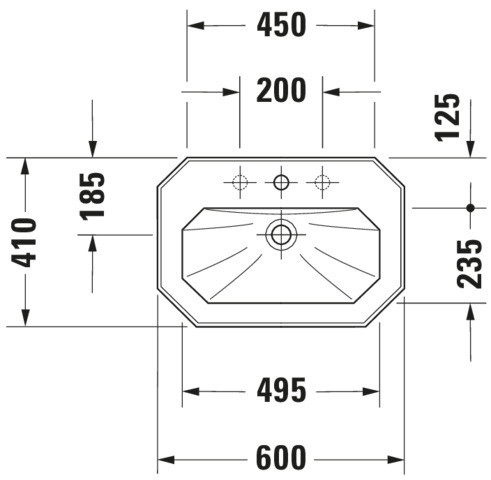 Duravit Waschtisch 1930 60 x 41 cm, weiß WonderGliss, mit Hahnloch, Überlauf, Hahnlochbank