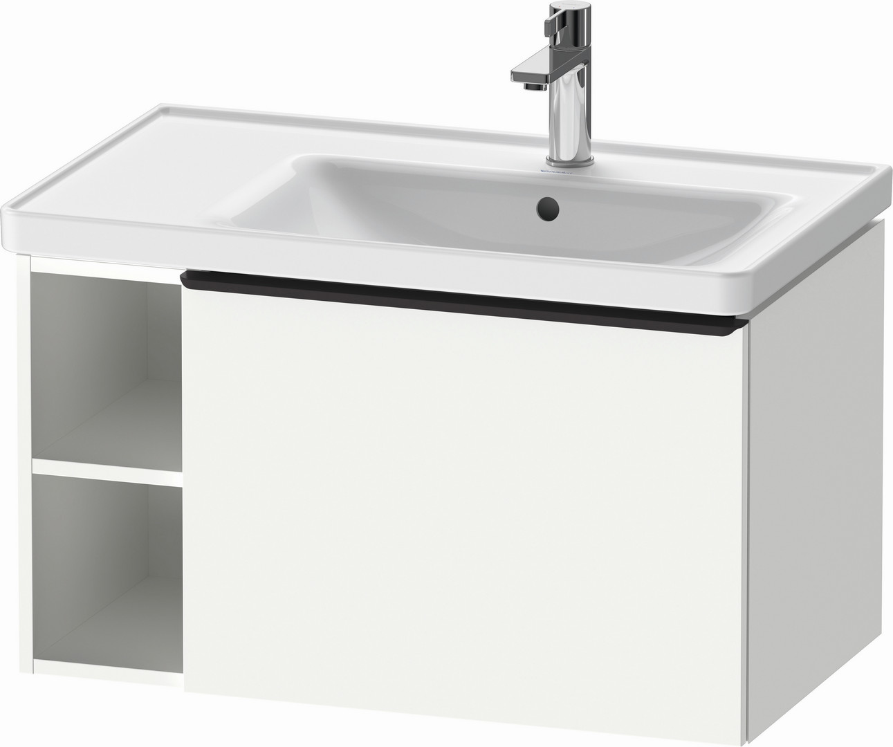 Höhe 44 cm, wandhängend, für D-Neo Waschtisch 237080, Regalelement seitlich links, nur mit Raumsparsiphon montierbar, Inneneinteilung optional möglich, lose einlegbar UV 9845