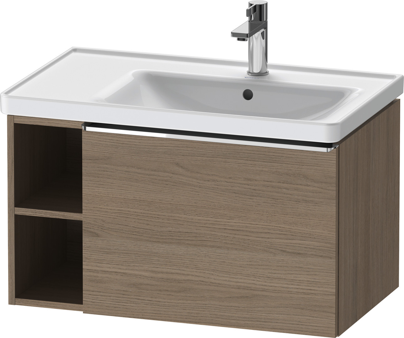 Duravit Waschtisch-Unterschrank D-Neo 78,4x45,2cm, 1 Auszug, Becken rechts, chrom/Eiche Terra