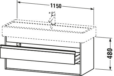 Höhe 48 cm, für Waschtische Vero 045450/045460/045470/045480/045410/045412, oberer Schubkasten mit Siphonausschnitt und Schürze, Inneneinteilung optional möglich, lose einlegbar UV 9845