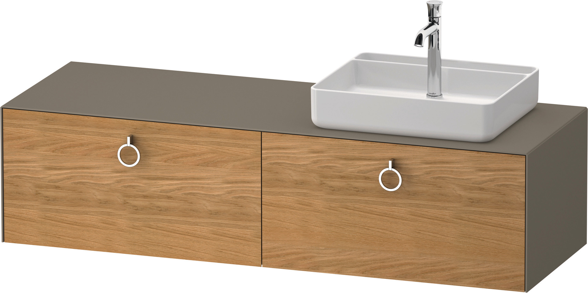 Duravit Waschtisch-Unterschrank White Tulip 160x55cm, Becken rechts, Eiche natur massiv/steingrau seidenmatt, kein Einrichtungssystem/mit Innenbeleuchtung