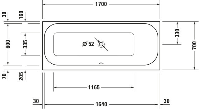 Duravit Whirlwanne Happy D.2 170 x 70 cm, Combi-System L, Einbauversion, 1 Rückenschräge rechts, weiß
