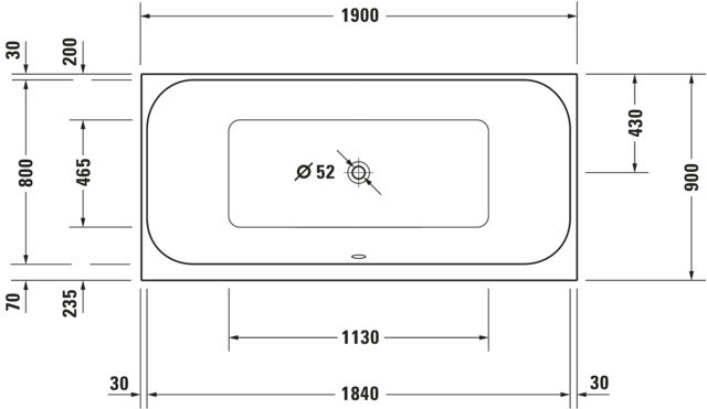 zentraler Ablauf, Material Sanitäracryl, Nutzinhalt 180/260 l, mit Fußgestell, Ab- und Überlaufgarnitur