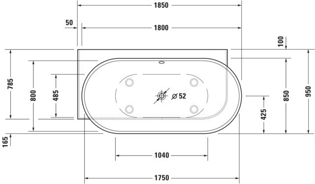 zentraler Ablauf, mit nahtloser Verkleidung, Material Mineralguss, Materialart DuraSolid A, Nutzinhalt 252 l, mit Fußgestell, Ab- und Überlaufgarnitur, Whirlsystem Air-System