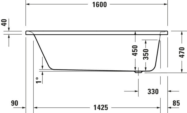 Ablauf im Fußbereich, unterschiedliche Rückenschräge Kopfseite, Material Sanitäracryl, Nutzinhalt 189/200/216/246 l, mit Fußgestell, Ab- und Überlaufgarnitur