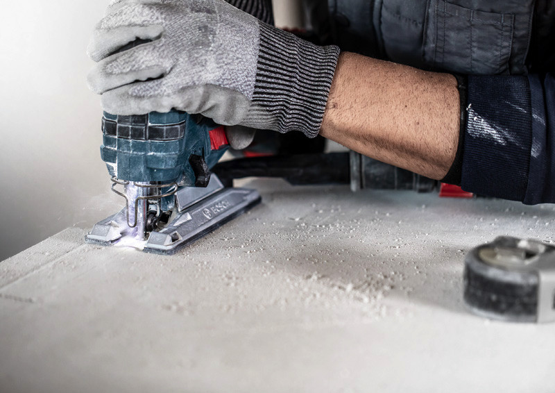 Herausragende Lebensdauer in abrasiven Baumaterialien! Große, konstante Zahnteilung für dicke, zähe Materialien Harte Materialien müssen mit einem robusten Stichsägeblatt bearbeitet werden, die Schnitte müssen aber trotzdem sauber sein. Abgenutzte Blätter erledigen die Arbeit nicht befriedigend. Daher ist das EXPERT Fibre Plaster-Blatt langlebig und qualitativ hochwertig. Seine Carbide-Zähne schneiden die abrasivsten Bauwerkstoffe wie Zementfaserplatten, Gipskartonplatten und glasfaserverstärkte Kunststoffe. Außerdem sorgen sie für maximale Produktivität. Das Bosch EXPERT Fibre Plaster-Stichsägeblatt wurde entwickelt, um Schnitte in die abrasivsten Materialien zu machen. Es ist die beste Wahl für Profis, die schwierige Aufgabe wie die Installation von Trockenbauwänden bewältigen müssen. Das Blatt ist in zwei Längenoptionen erhältlich: Das T141HM für maximale Kontrolle und das längere T341HM für dickere Werkstücke. Überragende Lebensdauer dank Bosch Carbide Technology