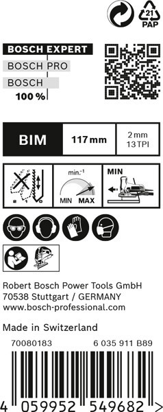 | Kurzbeschreibung (klein) | Bi-Metall Blatt: Kombiniert harte Zähne mit flexiblem Blattkörper. |