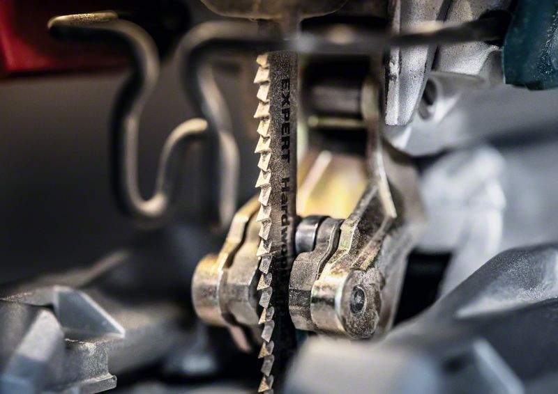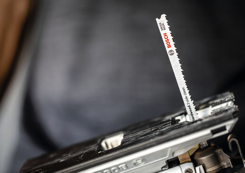 Hohe Präzision für ausrissfreies Schneiden von laminierten Arbeitsplatten! Bi-Metall Blatt: Kombiniert harte Zähne mit flexiblem Blattkörper Unter Tischlern und Schreinern war es schon immer eine Kunst sicherzustellen, dass der sichtbare Teil des Arbeitsmaterials die „saubere Seite“ eines Stichsägenschnitts zeigt. Manchmal muss man das Werkstück zum Sägen umdrehen. Oder die Stichsäge sägt von der Rückseite, um die gewünschte Schnittqualität auf der Sichtseite zu haben. Oder du verwendest das EXPERT Hardwood 2-side clean-Blatt, das dank seiner Zahngeometrie auf beiden Seiten einen perfekten, ausrissfreien Schnitt bietet. Hergestellt aus Bi-Metall – einer Leiste aus Schnellarbeitsstahl, die auf ein flexibles Stahlblatt geschweisst wird, um Festigkeit und Flexibilität zu kombinieren – ist das Bosch EXPERT Hardwood 2-side clean-Stichsägeblatt robust genug, um beschichtete Küchenplatten aus Grobspanplatten oder Hartholz zu schneiden. Erhältlich für ausrissfreie, gerade Schnitte (T308BF) und für besonders genaue ausrissfreie Winkelschnitte (T308BFP). Ausrissfreie Schnitte mit 2-side Clean Geometry