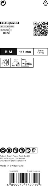 | Kurzbeschreibung (klein) | Bi-Metall Blatt: Kombiniert harte Zähne mit flexiblem Blattkörper. |