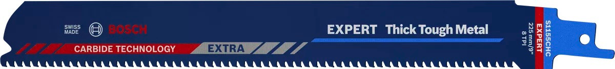 Herausragende Lebensdauer in dickem, zähem Metall! Breiter Körper für präzise, gerade Schnitte Das Schneiden durch dickes Metall wie Stahlprofile oder schwere Gussrohre gehört wahrscheinlich nicht zu deinen Lieblingsarbeiten. Klempner, Renovierer und Abbrucharbeiter wissen alle, dass für diese harte Arbeit selbst mit einer Hochleistungs-Säbelsäge Schweiß und Muskelkraft erforderlich sind. Das EXPERT Thick Tough Metal-Blatt schneidet nicht nur dickes Metall, es bietet auch eine außerordentlich lange Lebensdauer bei härtesten Einsätzen. Mit dem Bosch EXPERT Thick Tough Metal Säbelsägeblatt könntest du Gefallen am Schneiden von dickem Stahl und Gusseisen finden. Überragende Lebensdauer dank Bosch Carbide Technology