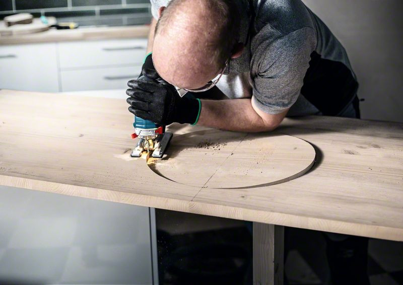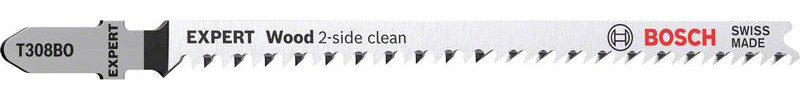 Hochpräzises, ausrissfreies Schneiden von Holz! Extrascharfe Zähne durch Präzisionsschliff Unter Tischlern und Schreinern war es schon immer eine Kunst sicherzustellen, dass der sichtbare Teil des Arbeitsmaterials die „saubere Seite“ eines Stichsägenschnitts zeigt. Manchmal muss man das Werkstück zum Sägen umdrehen. Oder die Stichsäge sägt von der Rückseite, um die gewünschte Schnittqualität auf der Sichtseite zu haben. Oder du verwendest das EXPERT Wood 2-side clean-Blatt, das dank seiner Zahngeometrie auf beiden Seiten einen perfekten, ausrissfreien Schnitt bietet. Mit seinen besonders scharfen, präzisionsgeschliffenen Zähnen eignet sich das Bosch EXPERT Wood 2-side clean-Stichsägeblatt gut zum Schneiden von Weichholz mit einer Dicke von bis zu 50 mm. Möbelschreiner können ein perfektes Ergebnis erzielen und verlieren nicht nach jedem Stichsägenschnitt Zeit durch Schleifen. Erhältlich für gerade Schnitte (T308B), für Kurvenschnitte (T308BO) und für genaue Winkelschnitte (T308BP). Ausrissfreie Schnitte mit 2-side Clean Geometry
