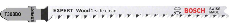 Hochpräzises, ausrissfreies Schneiden von Holz! Extrascharfe Zähne durch Präzisionsschliff Unter Tischlern und Schreinern war es schon immer eine Kunst sicherzustellen, dass der sichtbare Teil des Arbeitsmaterials die „saubere Seite“ eines Stichsägenschnitts zeigt. Manchmal muss man das Werkstück zum Sägen umdrehen. Oder die Stichsäge sägt von der Rückseite, um die gewünschte Schnittqualität auf der Sichtseite zu haben. Oder du verwendest das EXPERT Wood 2-side clean-Blatt, das dank seiner Zahngeometrie auf beiden Seiten einen perfekten, ausrissfreien Schnitt bietet. Mit seinen besonders scharfen, präzisionsgeschliffenen Zähnen eignet sich das Bosch EXPERT Wood 2-side clean-Stichsägeblatt gut zum Schneiden von Weichholz mit einer Dicke von bis zu 50 mm. Möbelschreiner können ein perfektes Ergebnis erzielen und verlieren nicht nach jedem Stichsägenschnitt Zeit durch Schleifen. Erhältlich für gerade Schnitte (T308B), für Kurvenschnitte (T308BO) und für genaue Winkelschnitte (T308BP). Ausrissfreie Schnitte mit 2-side Clean Geometry