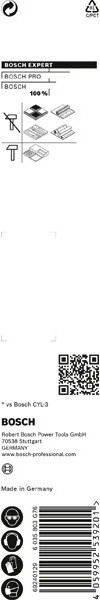 Hochpräzises Bohren in verschiedene Materialien! Präzises Anbohren von Löchern dank einer speziell konzipierten Zentrierspitze Moderne Baustellen erfordern das Arbeiten mit vielen verschiedenen Materialien und man weiß nie, was man als Nächstes bohren muss. Es kann schwierig und zeitaufwendig sein, den richtigen Bohrer zu finden – es sei denn, du hast den EXPERT Multi Construction-Bohrer. Der Bosch EXPERT CYL-9 Multi Construction-Rundschaftbohrer darf in keinem Werkzeugkasten fehlen: Man kann jede Arbeit präzise erledigen und verliert keine Zeit mit der Suche nach dem richtigen Bohrer. Präzises Bohren ist mit Bosch Centering Geometry noch einfacher
