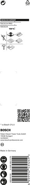 Hochpräzises Bohren in verschiedene Materialien! Präzises Anbohren von Löchern dank einer speziell konzipierten Zentrierspitze Moderne Baustellen erfordern das Arbeiten mit vielen verschiedenen Materialien und man weiß nie, was man als Nächstes bohren muss. Es kann schwierig und zeitaufwendig sein, den richtigen Bohrer zu finden – es sei denn, du hast den EXPERT Multi Construction-Bohrer. Der Bosch EXPERT CYL-9 Multi Construction-Rundschaftbohrer darf in keinem Werkzeugkasten fehlen: Man kann jede Arbeit präzise erledigen und verliert keine Zeit mit der Suche nach dem richtigen Bohrer. Präzises Bohren ist mit Bosch Centering Geometry noch einfacher