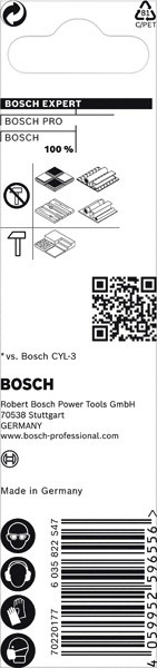 Hochpräzises Bohren in verschiedene Materialien! Präzises Anbohren von Löchern dank einer speziell konzipierten Zentrierspitze Moderne Baustellen erfordern das Arbeiten mit vielen verschiedenen Materialien und man weiß nie, was man als Nächstes bohren muss. Es kann schwierig und zeitaufwendig sein, den richtigen Bohrer zu finden – es sei denn, du hast den EXPERT Multi Construction-Bohrer. Der Bosch EXPERT CYL-9 Multi Construction-Rundschaftbohrer darf in keinem Werkzeugkasten fehlen: Man kann jede Arbeit präzise erledigen und verliert keine Zeit mit der Suche nach dem richtigen Bohrer. Präzises Bohren ist mit Bosch Centering Geometry noch einfacher