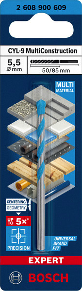 EXPERT CYL-9 MultiConstruction Bohrer, 5,5 x 50 x 85 mm