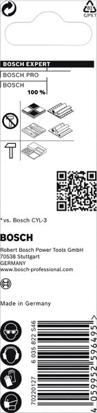 Hochpräzises Bohren in verschiedene Materialien! Präzises Anbohren von Löchern dank einer speziell konzipierten Zentrierspitze Moderne Baustellen erfordern das Arbeiten mit vielen verschiedenen Materialien und man weiß nie, was man als Nächstes bohren muss. Es kann schwierig und zeitaufwendig sein, den richtigen Bohrer zu finden – es sei denn, du hast den EXPERT Multi Construction-Bohrer. Der Bosch EXPERT CYL-9 Multi Construction-Rundschaftbohrer darf in keinem Werkzeugkasten fehlen: Man kann jede Arbeit präzise erledigen und verliert keine Zeit mit der Suche nach dem richtigen Bohrer. Präzises Bohren ist mit Bosch Centering Geometry noch einfacher