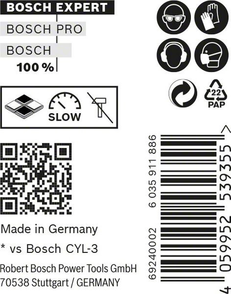 Hochpräzises Bohren in verschiedene Materialien! Präzises Anbohren von Löchern dank einer speziell konzipierten Zentrierspitze Moderne Baustellen erfordern das Arbeiten mit vielen verschiedenen Materialien und man weiß nie, was man als Nächstes bohren muss. Es kann schwierig und zeitaufwendig sein, den richtigen Bohrer zu finden – es sei denn, du hast den EXPERT Multi Construction-Bohrer. Der Bosch EXPERT CYL-9 Multi Construction-Rundschaftbohrer darf in keinem Werkzeugkasten fehlen: Man kann jede Arbeit präzise erledigen und verliert keine Zeit mit der Suche nach dem richtigen Bohrer. Präzises Bohren ist mit Bosch Centering Geometry noch einfacher
