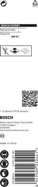 Herausragende Lebensdauer in harten Fliesen! Präzises Anbohren von Löchern dank einer speziell konzipierten Zentrierspitze Da Wandfliesen mittlerweile immer größer und härter werden, ist auch das Bohren von Löchern mit einem Fliesenbohrer immer schwieriger. Aus diesem Grund hat Bosch den EXPERT Hard Ceramic Bohrer entwickelt, mit dem du Hartkeramik trocken bohren kannst. Er ist zudem weitaus langlebiger als unser Benchmark-Bohrer für Fliesen. Der Bosch EXPERT HEX-9 Hard Ceramic Bohrer eignet sich zum Bohren von Keramik. Er kann ohne Schmiermittel oder Kühlung Löcher in harte Fliesen bohren. Außergewöhnlich ausdauernder Bohrer mit Bosch Carbide Technology