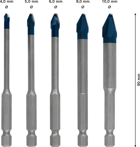 EXPERT HEX-9 HardCeramic Bohrer-Set, 4/5/6/8/10 mm, 5-tlg.