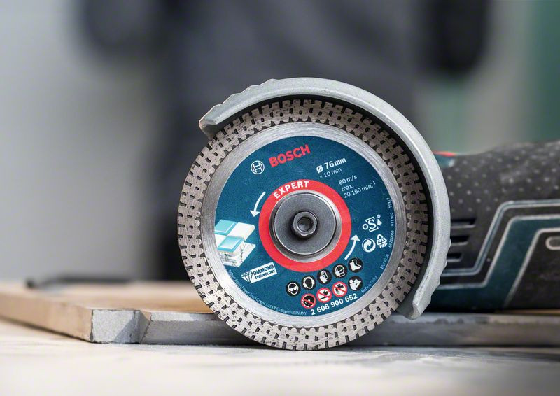 Hochpräzises Schneiden von Hartkeramikfliesen! Materialschonendes Schneiden mit speziell entwickeltem durchgehendem Schneidrand. Die in modernen Baustellen verwendeten Fliesen sind häufig groß, sehr hart und teuer. Es ist daher sehr wichtig, sie jedes Mal perfekt zu schneiden – auch wenn dies schwierig ist. Die EXPERT HardCeramic Fliesentrennscheibe verwendet Diamond Technology und ein einzigartiges Design, um konstant die besten Ergebnisse zu liefern, selbst in härtester Keramik. Die Bosch EXPERT HardCeramic 76-mm-Diamant-Fliesentrennscheibe bietet die besten Schnitte in harten Fliesen. Mit dieser Diamanttrennscheibe erreichst du bei allen Arbeiten ein professionelles Finish. Saubere, hochwertige Schnitte mit Bosch Diamond Technology.