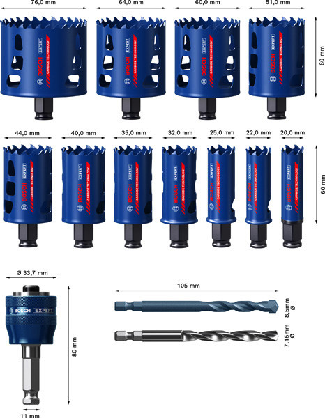 EXPERT Tough Material Lochsäge-Set, 20/22/25/32/35/40/44/51/60/64/76 mm, 14-tlg.