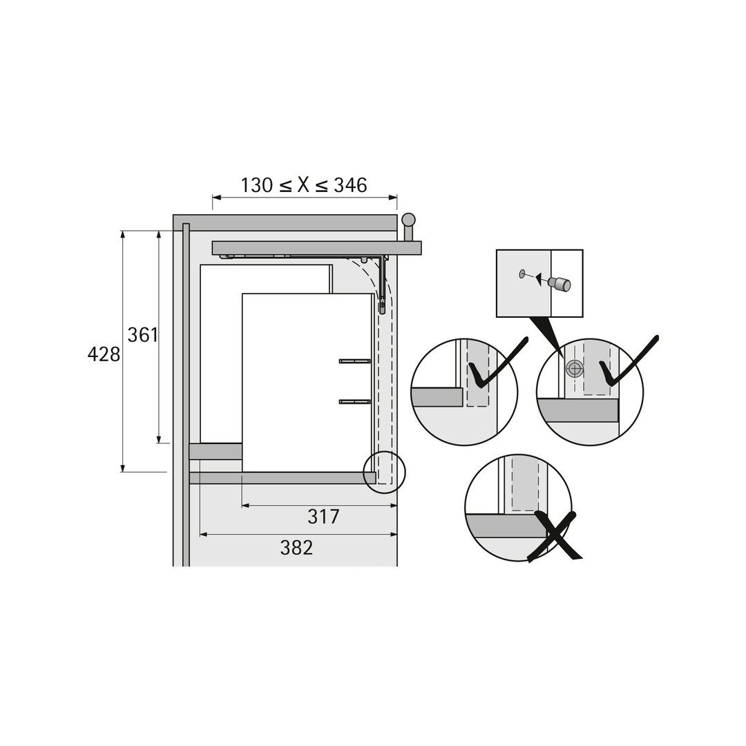 • Die einliegende Klappe ist einfach montierbar und verschwindet beim Öffnen nahezu komplett im Schrank