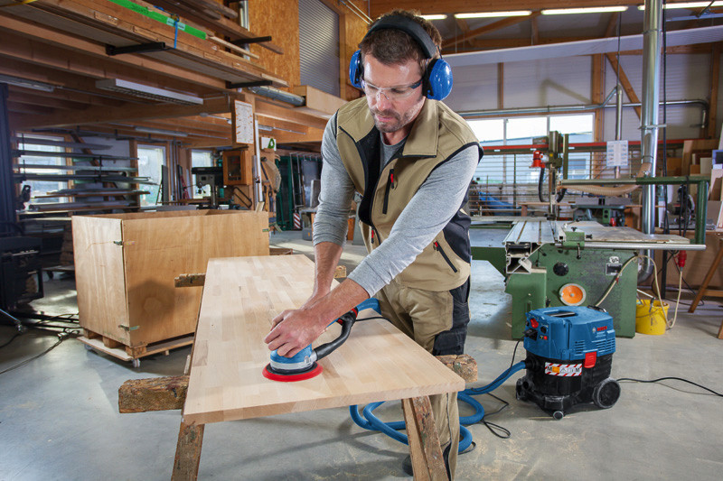 Exzenterschleifer GET 75-150, Der GET 75-150 Professional ist der kabelgebundene (150 mm) Exzenterschleifer mit Direktantriebsmodus von Bosch mit herausragender Werkzeugkontrolle und Handhabung. Er ist mit einer perfekt geformten ergonomischen Handauflage und einem Handgriff mit nur 18 cm Griffumfang für die optimale Werkzeugkontrolle ausgestattet. Dank des Multiloch-Schleiftellers können alle Schleifblätter unabhängig vom Lochraster problemlos verwendet werden und die Staubabsaugung ist deutlich stärker. Das Gerät verfügt über einen extrem leistungsstarken 750-Watt-Motor mit Tellerrotation im Direktantriebsmodus für bis zu 45 % mehr Abtragsleistung. Dieser kabelgebundene Schleifer ist für den Grundschliff, den Zwischenschliff, den Lackabtrag, die Endbearbeitung und das Polieren von Oberflächen vorgesehen. Er ist einsetzbar bei Holz, Furnier, Lack, Füllstoffen, Mineralstoffen und Acryl. Es ist kompatibel mit dem Bosch Click & Clean Staubabsaugsystem. Der GET 75-150 verfügt auch über eine konstante Drehzahl, einen Direktantriebsmodus, einen Kantenschutz, einen 150-mm-Schleifteller mit Klettverschluss zur Schleifblattbefestigung und Drehzahlvorwahl. Schleifteller (150 mm) (2 608 900 007). L-BOXX 238 (1 600 A01 2G2). 1 x Schleifblatt M480, Best for Wood and Paint, 80 (separat erhältlich als 5er-Pack: 2 608 621 162). 1 x Schleifblatt M480, Best for Wood and Paint, 120 (separat erhältlich als 5er-Pack: 2 608 621 164). 1 x Schleifblatt M480, Best for Wood and Paint, 180 (separat erhältlich als 5er-Pack: 2 608 621 166). Schutzring für 150 mm (2 607 017 497). Zusatzhandgriff inkl. Schraube (2 607 017 500). Ausblasrohr für 150 mm (2 607 017 499). Innensechskantschlüssel