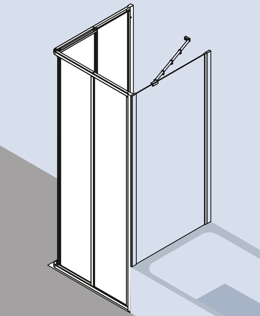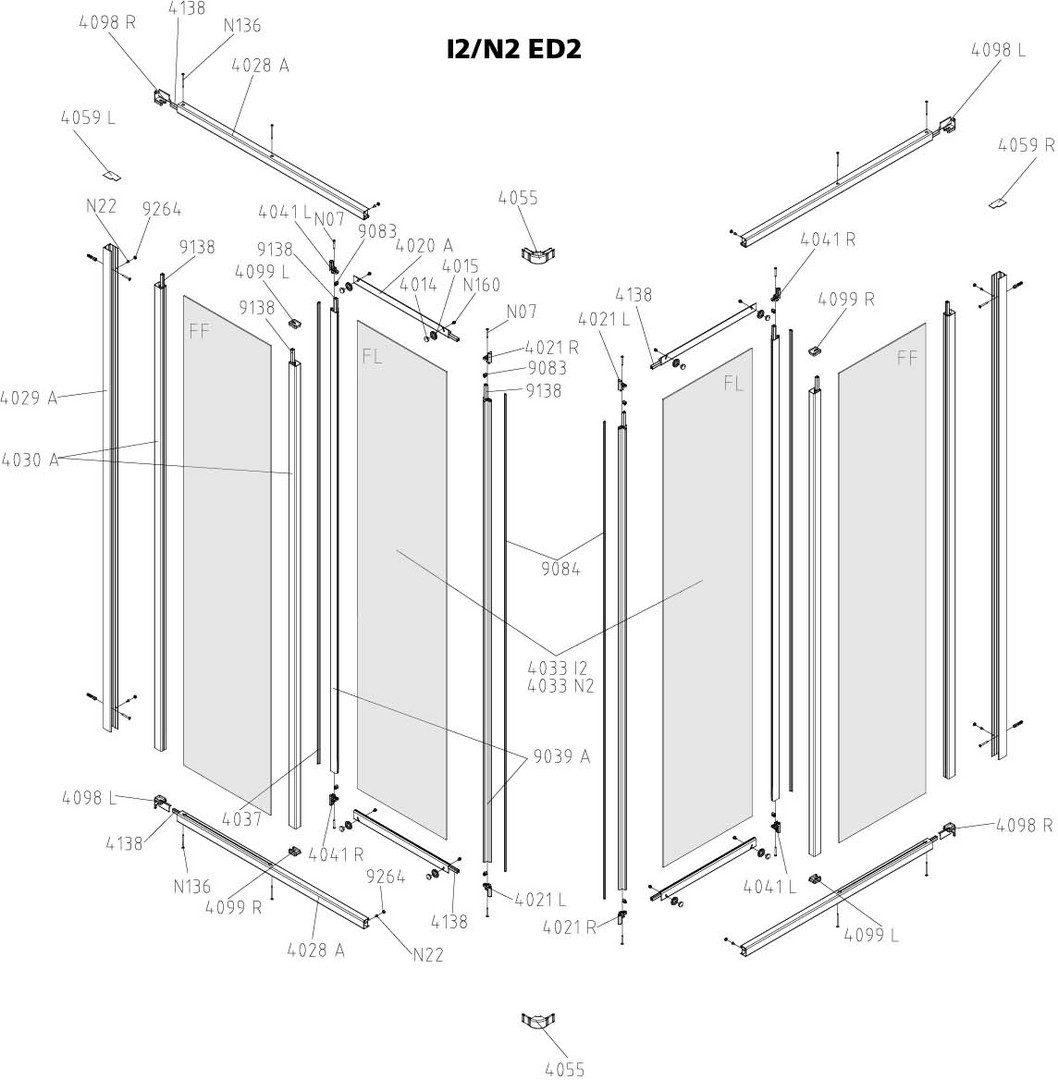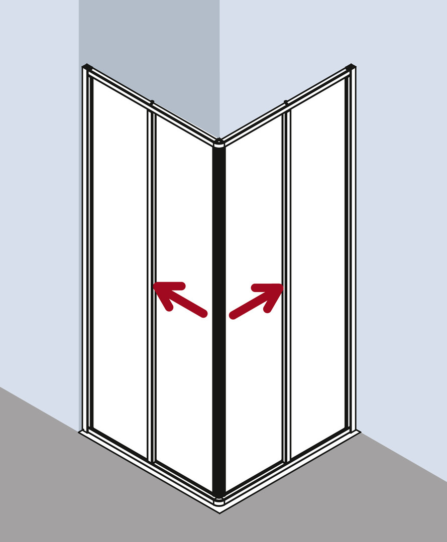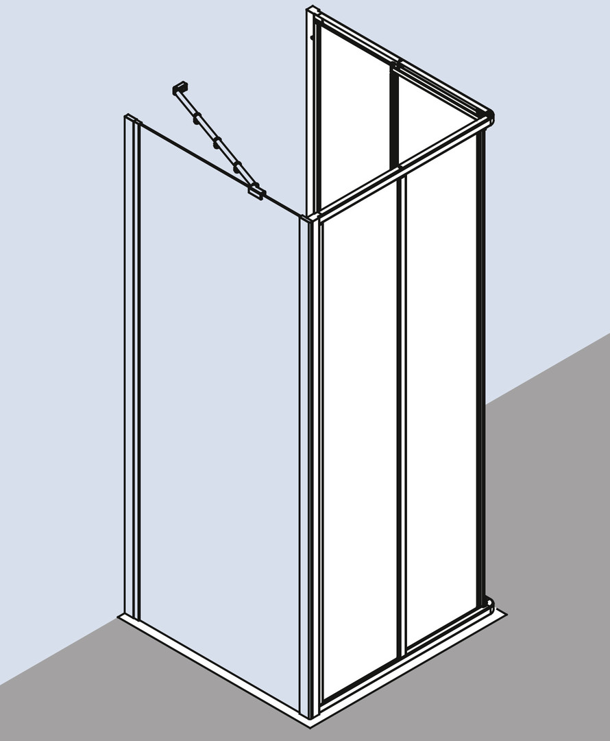 kompletter Eckeinstieg besteht aus zwei Halbteilen I2 ED2, Halbteile unterschiedlicher Breite beliebig kombinierbar, Kombination I2 ED2 Eckeinstieg 2-teilig (Gleittüren) und I2 ED3 Eckeinstieg 3-teilig (Gleittüren) nicht möglich, gerahmter Eckeinstieg mit zwei Gleittürsegmenten, je nach einer Seite öffnend, mit zwei Festfeldern, Verglasung 3 mm Einscheiben-Sicherheitsglas nach DIN EN 12150, Profile und Griffleisten aus hochwertigem eloxiertem Aluminium, Verstellmöglichkeit im Wandprofil 22 mm, Durchgehende Magnetleisten und Dichtprofile, mit Bodenprofil (Höhe 32 mm), mit Befestigungsmaterial, Made in Germany, geprüft nach DIN EN 14428 (CE) und PPP 53005 (TÜV/GS), 20 Jahre Ersatzteil-Nachkaufsicherheit nach Auslauf des Modells, Qualitätssicherungssystem zertifiziert nach DIN EN ISO 9001:2015, Umweltmanagement zertifiziert nach DIN EN 14001:2015, Energiemanagement zertifiziert nach DIN EN 50001:2011