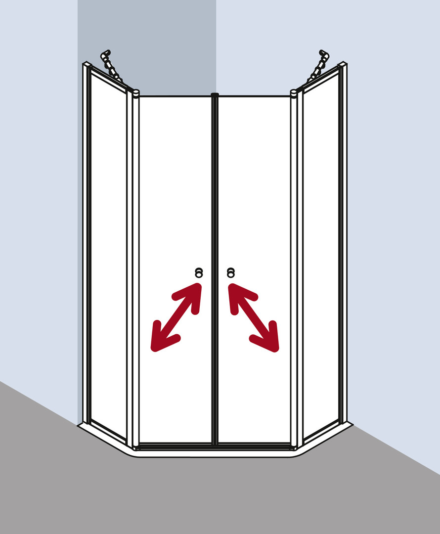 FORMAT Basic Pendeltür-Fünfeckduschkabine silbermatt, F40, 900 x 2000 mm, Kerolan Fontana