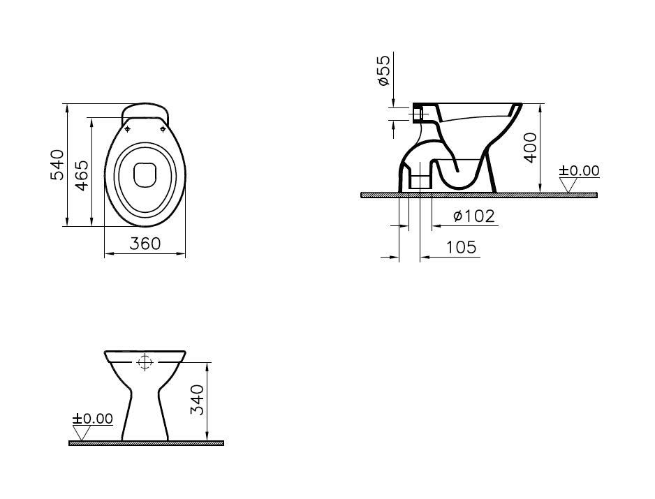 FORMAT Basic Stand-Tiefspül-WC 36 x 46,5/54 cm, Abgang senkrecht, weiß