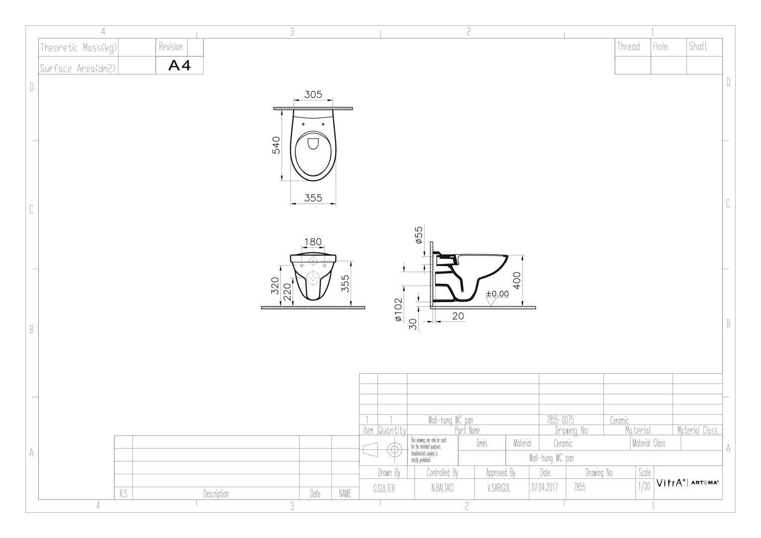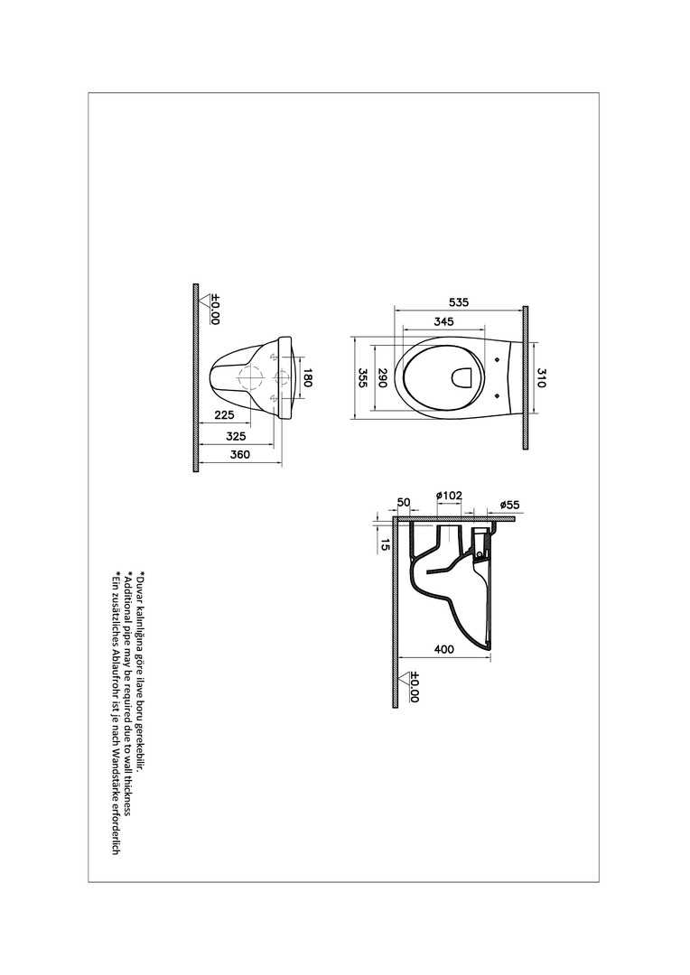 FORMAT Basic Wand-Tiefspül-WC 35,5 x 54 cm, weiß, spülrandlos