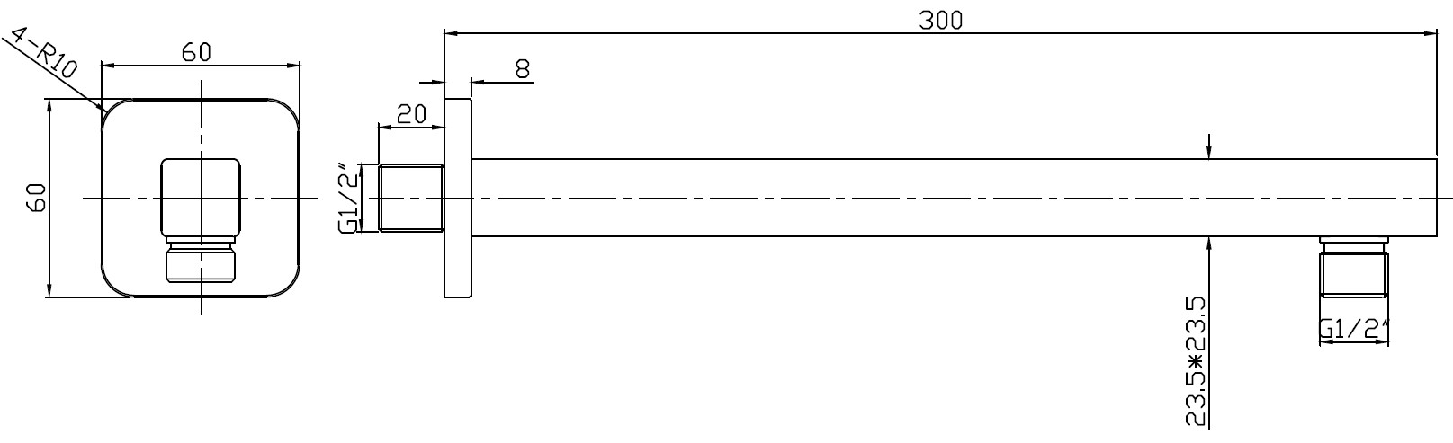 FORMAT Brausearm 300 mm, Messing verchromt, eckig, Anschlussgewinde 1/2"