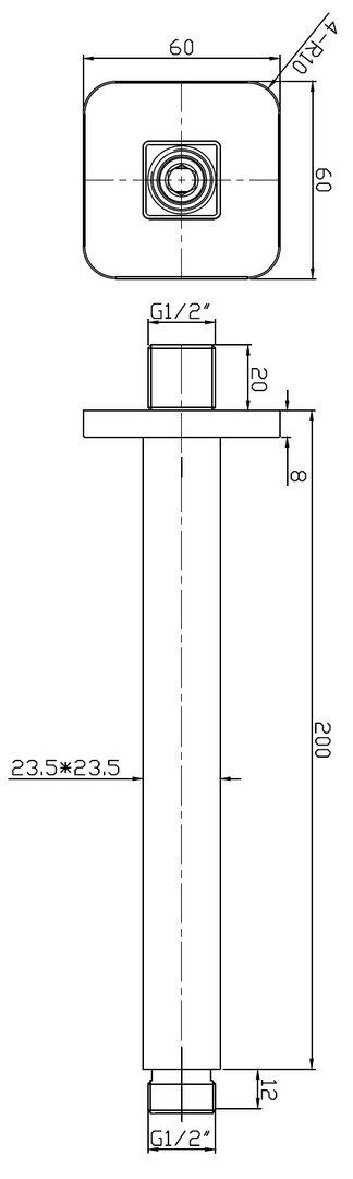 FORMAT Deckenanbindung 200 mm, Messing verchromt, eckig, Anschlussgewinde 1/2"