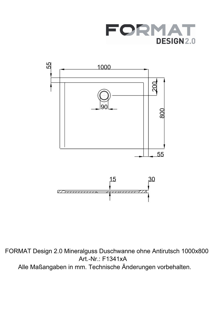 FORMAT Design 2.0 Duschwanne Mineralguss 100 x 80 x 3 cm, weiß, ohne Antirutsch