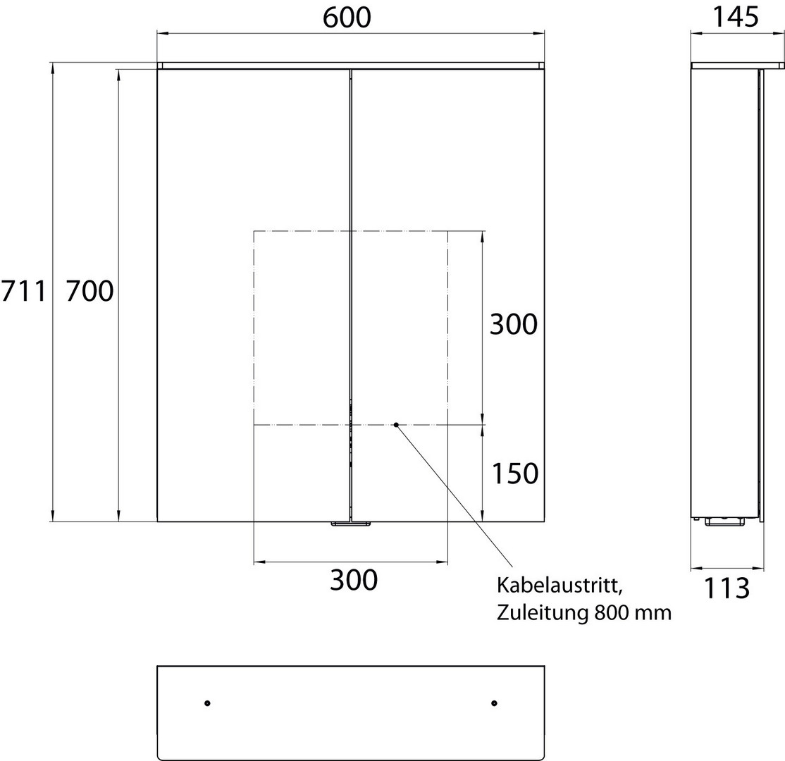 FORMAT Design Lichtspiegelschrank Flat 2 Design 600 x 700 x 113 mm, 2 Türen, chrom, mit Unterlicht