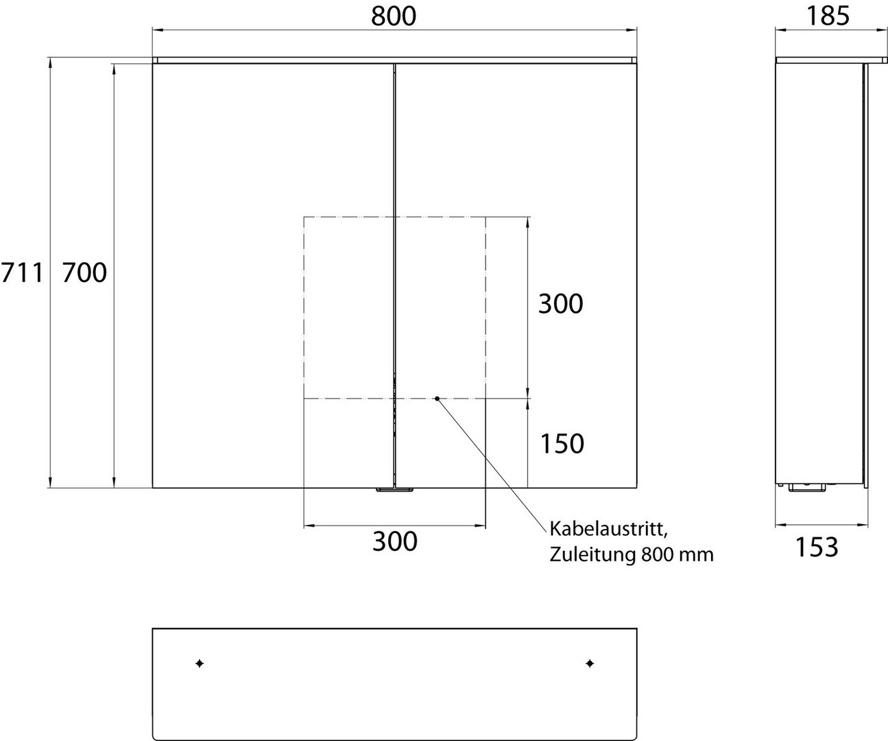 FORMAT Design Lichtspiegelschrank Pure 2 Design 800 x 700 x 153 mm, 2 Türen, chrom, mit Unterlicht