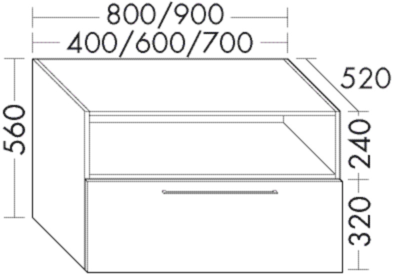 FORMAT Design Unterschrank WVWB 800 x 560 x 520 mm, Basaltgrau Matt, 1 Fach, 1 Auszug