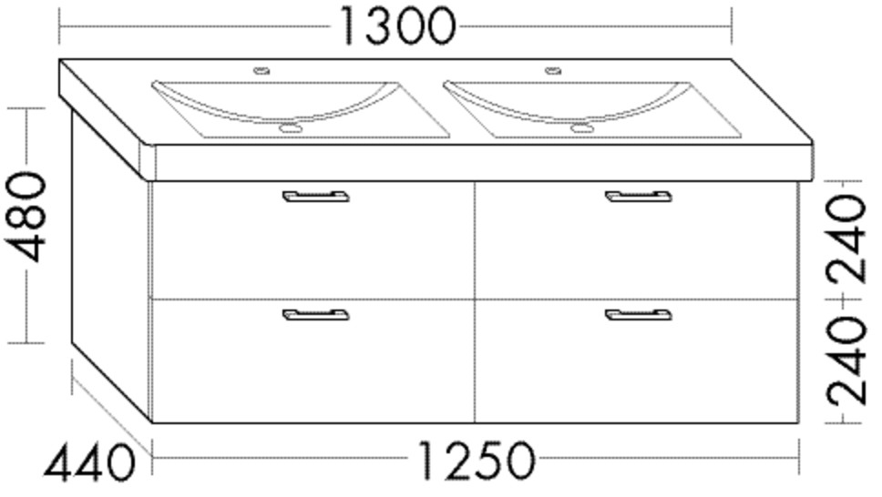 FORMAT Design Waschtisch-Unterschrank WWMN125 1250x480x440mm, 2 Schubladen/2 Auszüge, weiß Matt