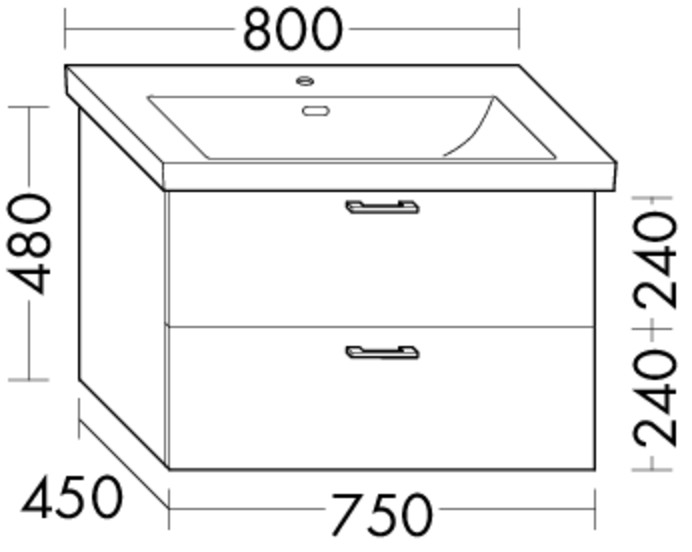 FORMAT Design Waschtisch-Unterschrank WXPO075 750x480x450mm, 1 Schublade/1 Auszug, Basaltgrau Matt
