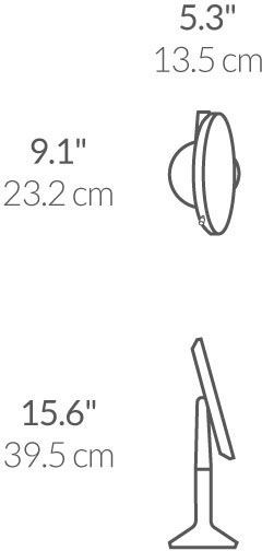 funktioniert wie drei Spiegel, eine Seite mit 5-facher Vergrößerung, durch einfaches Wenden eine Ansicht mit 1-facher Vergrößerung, mit einer Blende mit 10-facher Vergrößerung, tru-lux Lichtsystem simuliert das natürliche Sonnenlicht, verfügt über eine Kerzenlicht-Einstellung, mit der Touch-Helligkeitsregelung kann der stufenlose Helligkeitsbereich schnell und intuitiv geregelt werden, der Bewegungssensor schalten den Spiegel automatisch ein, wenn sich Ihr Gesicht nähert, kabellos und wiederaufladbar - eine Ladung hält bis zu 5 Wochen