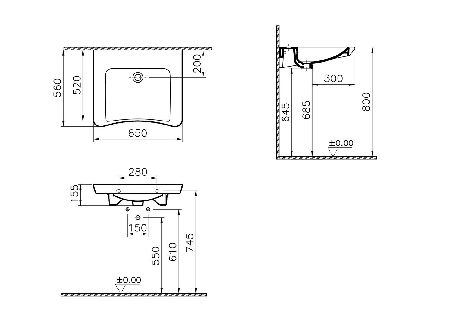 FORMAT Plus Waschtisch 65 x 56 cm, weiß, ohne Überlauf und Hahnloch