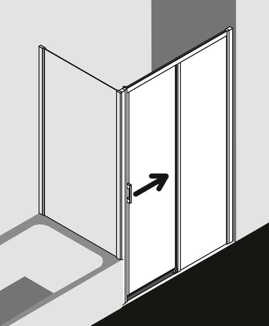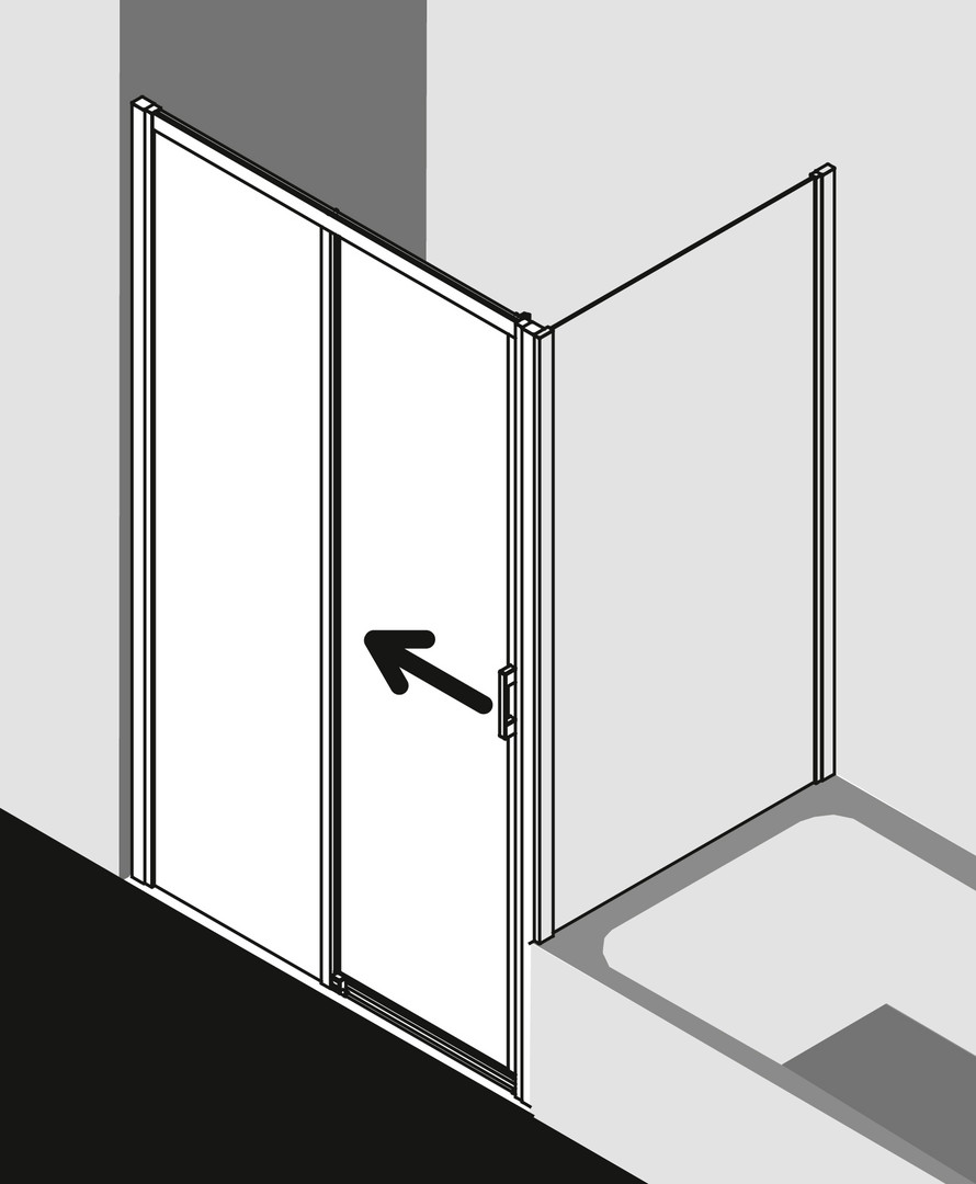 FORMAT Pro 2.0 Gleittür 2-tlg. mit Festfeld silber matt, bodenfrei, links, 120 x 185 cm, ESG klar