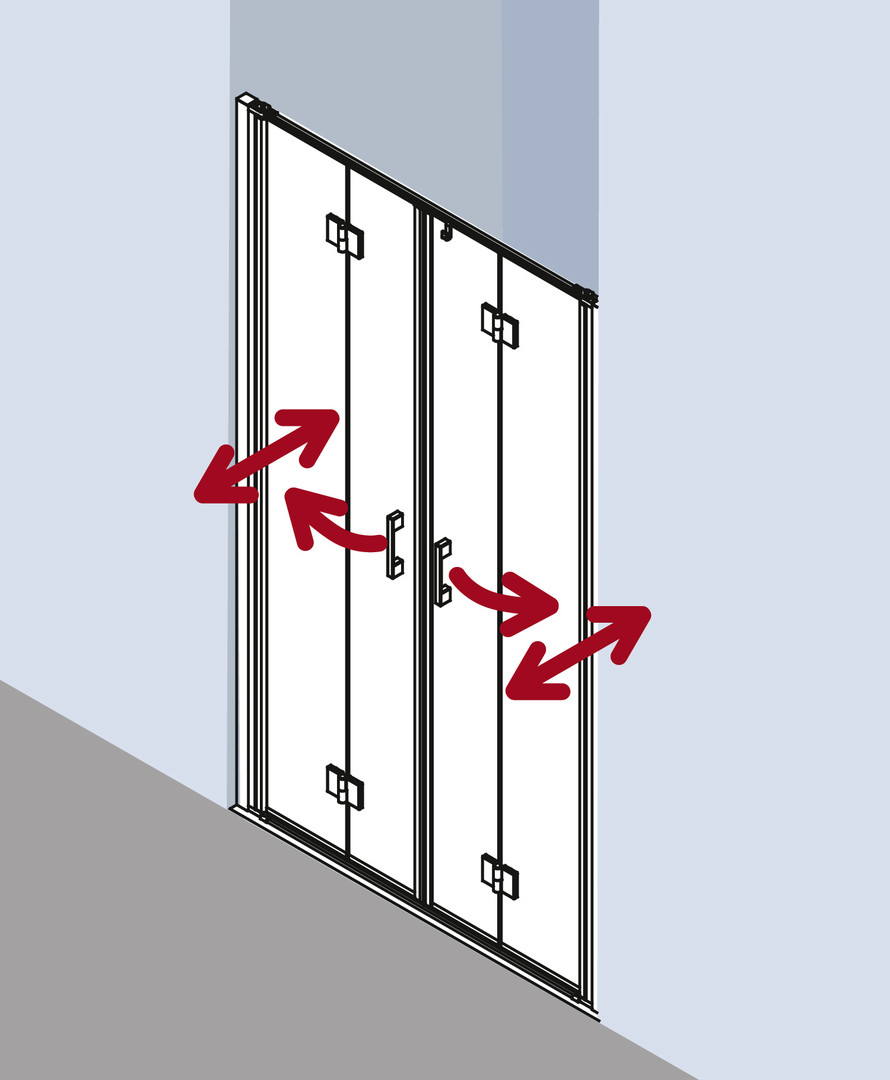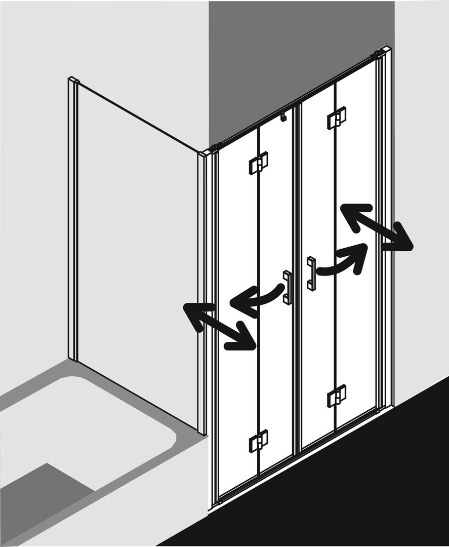 FORMAT Pro 2.0 Pendel-Falttür 4-tlg. silber hochglanz, 135 x 185 cm, ESG klar