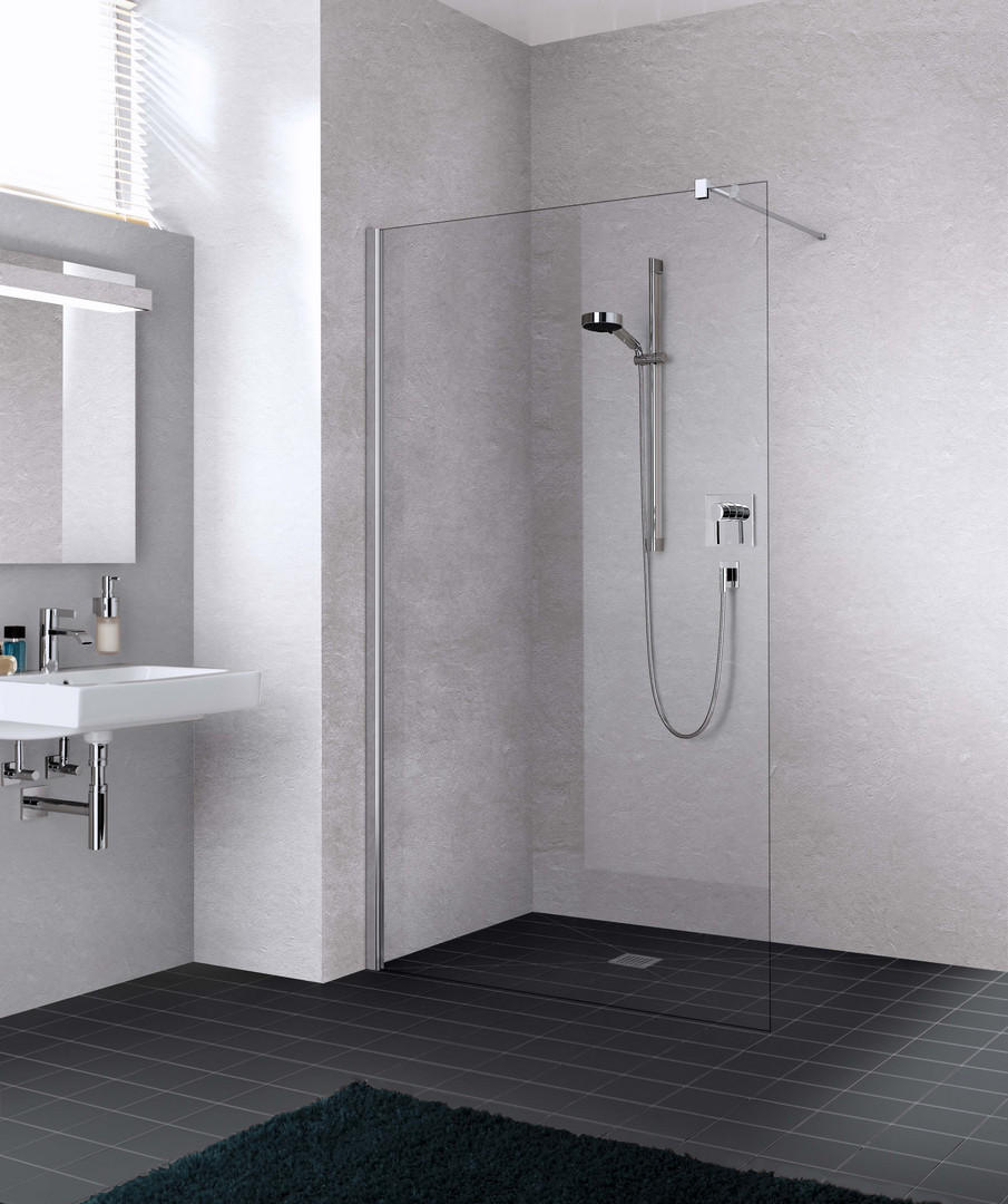 FORMAT Pro 2.0 Walk-In Wall silber hochglanz, Maßanfertigung, Wanneneinbaumaß bis 145,1-160 cm, ESG klar Clean